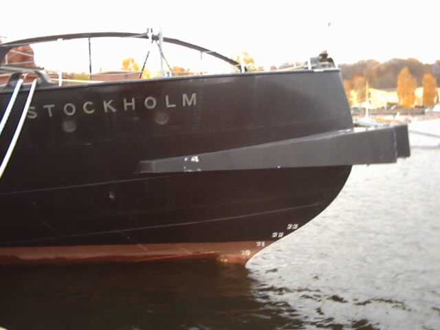 Dit is de Kont van de oude Zweedse Stoomijsbreker "Sankt Erik" in het Wasa museum in Stockholm, wat je noemt een: "Zweedse kano IjsbrekerKont met steuntje"
